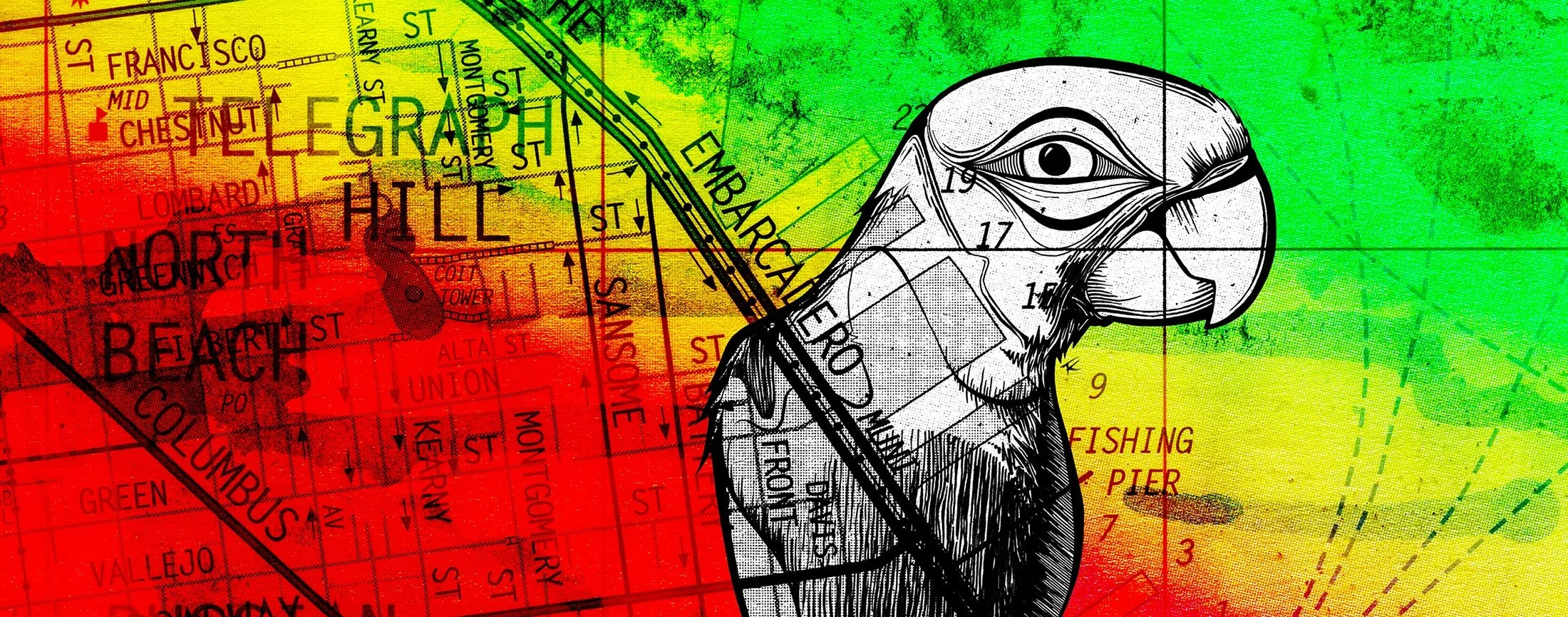 An Art Gallery On Wheels. The SF Edition of Sight Seeing features illustrated portraits of wildlife over the San Francisco neighborhood they are commonly found in. In the spring of 2017, this series was featured on Muni Buses.